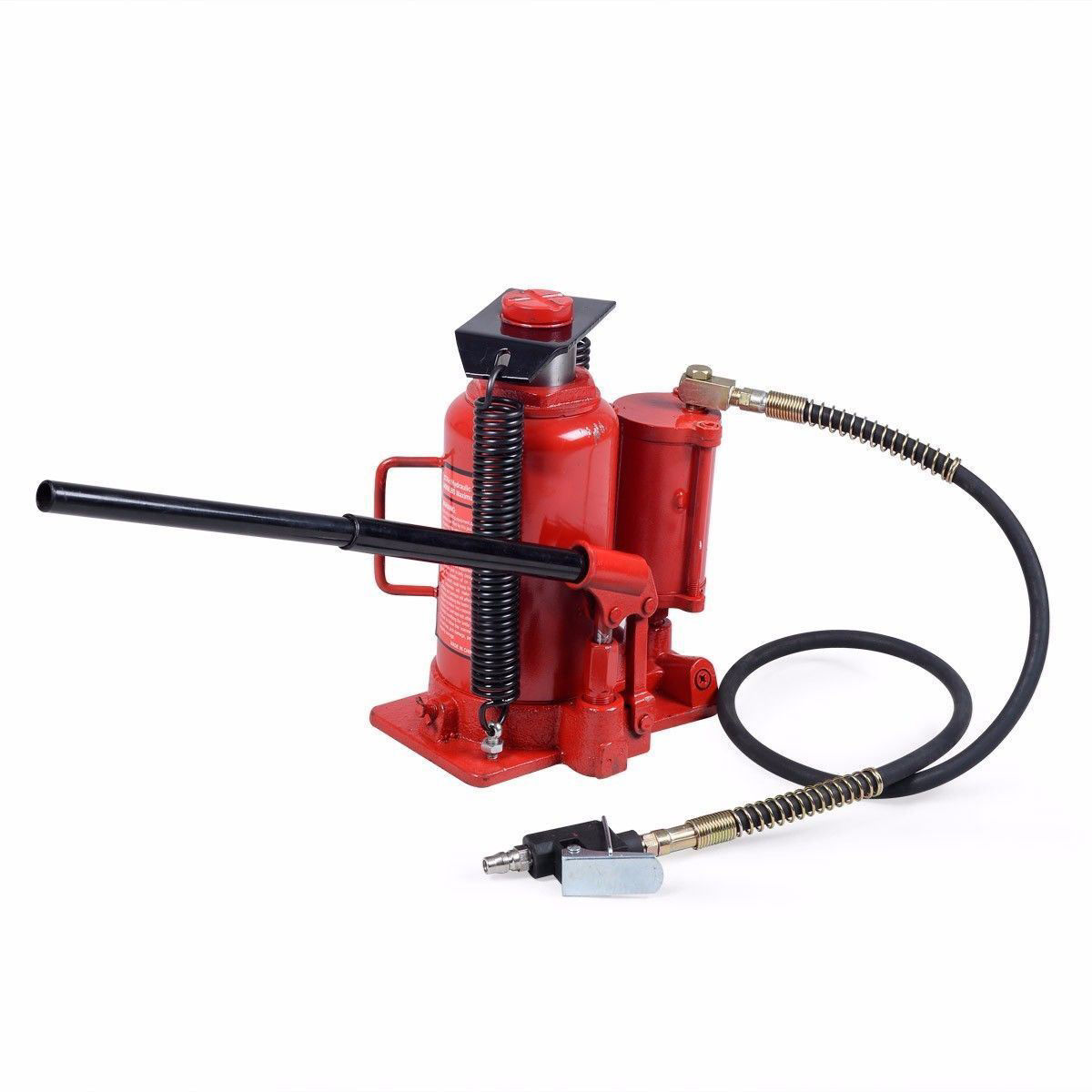 Air/Hydraulic Bottle Jack: 20 tons/44092 lbs bottle jack is ideal for large size and heavy-duty applications. It integrates a pneumatic jack with a hydraulic jack into this one car bottle jack. It is ideal for lifting heavy-duty machinery, industrial construction equipment, farm vehicles, and more.